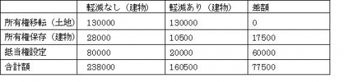 たとえば、建物の評価額が金700万円、土地の評価額が金1300万円、銀行からの借り入れが金2000万円だったとします。登録免許税の軽減をを受けた場合と受けなかった場合で、下記のような金額の差が出ます。